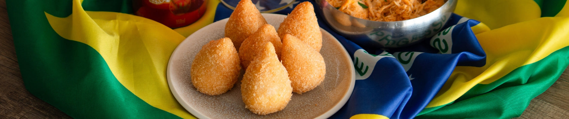 Un cuoco di corte dell’Ottocento inventò la coxinha per un giovane principe che voleva solo cosce di pollo: guscio dorato modellato “a coscia” e cuore cremoso di pollo sfilacciato, perfetta come snack dell’aperitivo.